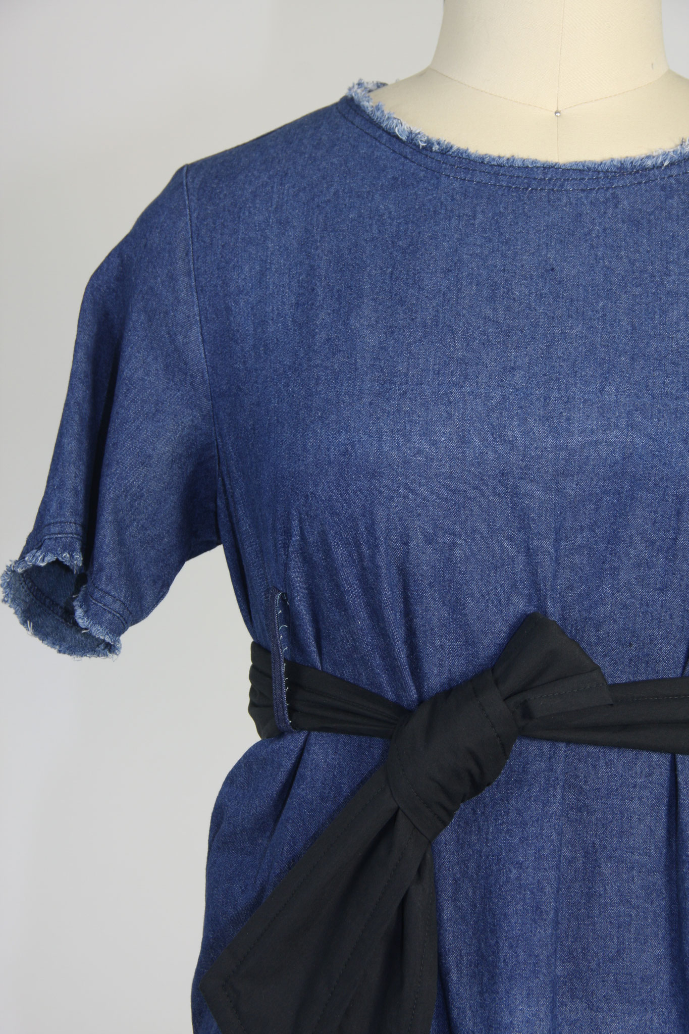 Das drapierte Kleid ist aus einem Baumwollmix handgefertigt und schließt mit einem Nahtfeinem Reißverschluss.