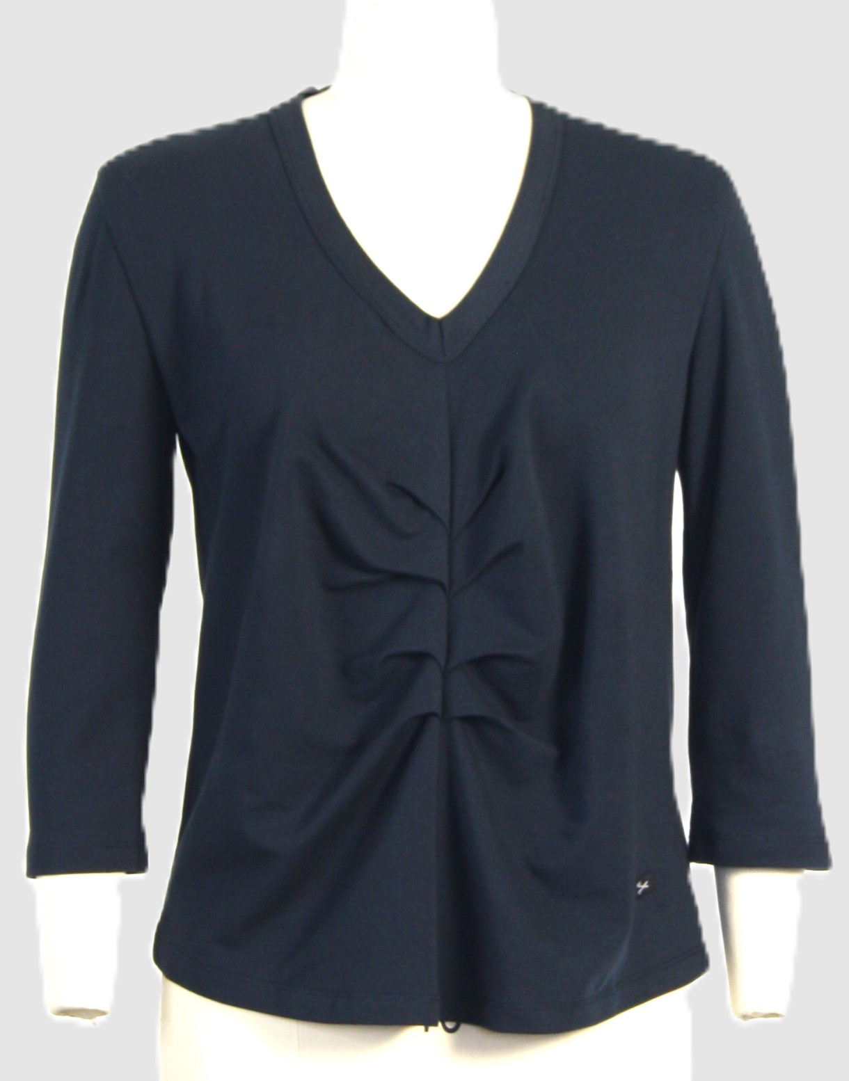 Der Pullover ist aus einem weichen Baumwollstoff handgefertigt und hat einen V-Ausschnitt.